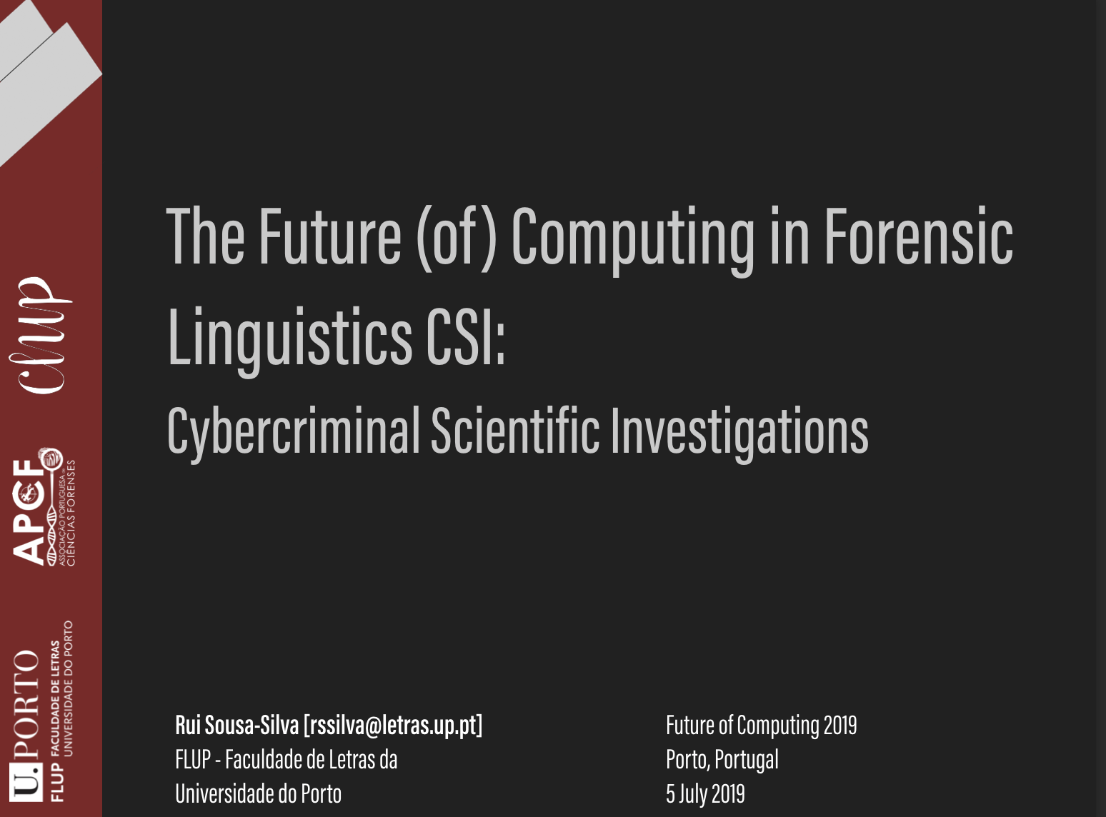 Cybercriminal activities have increased dramatically over the last few years, especially as a result of both the technological developments and the perceived anonymity of users of such technologies. Common users often engage in criminal activities online (such as intellectual property theft, stalking, defamation, cyberbullying, cyberthreats and terrorism, among others) as they believe that, by creating fake profiles and using public access computers, their identity remains unknown; computer expert users, on the contrary, have the knowledge and skills to obfuscate their real identity, e.g. by using stealth technologies or even hard core methods such as the ones provided by the dark web. Forensic Linguistics, and especially its subarea of Forensic Authorship Analysis, has been crucial in this area as it allows the identification of the most likely author from a pool of suspects by analysing the language used. As previous research shows, traditional forensic authorship analysis methods and techniques have been successfully used in online and offline criminal cases alike. However, the future of computing will raise new challenges to the forensic analysis. For instance, the fact that AI systems such as the OpenAI are able to generate human-like texts, by supposedly emulating an authors’ writing style, can turn out to become the single biggest challenge for forensic linguists, as research conducted so far has demonstrated that humans are incapable of replicating another author’s writing style — their idiolect. Notwithstanding, such systems can also be used to aid forensic linguists, as long as the latter can gain the knowledge required to efficiently use systems available. This session discusses how present computing is threatening forensic work, and how such threats will increase in the future, to argue that, ultimately, the power to counter ‘black-box’ systems – as required by law – is in the hands of future forensic linguistic computing.